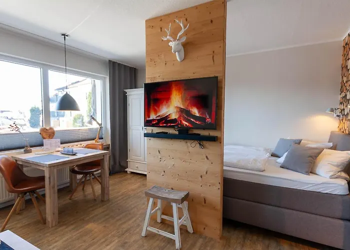 Ferienwohnung Bergchalet 2 Mit Balkon Braunlage с видом на сад находятся в Браунлаге, приблизительно в 4 км от Ландшафтсшуцгебита Гарц унд зюдлихес Харцфорланд. Если вы приехали в Браунлаге, чтобы покататься на лыжах, в апартаментах вам предоставят камеру хранения лыжного оборудования и аренду лыж.